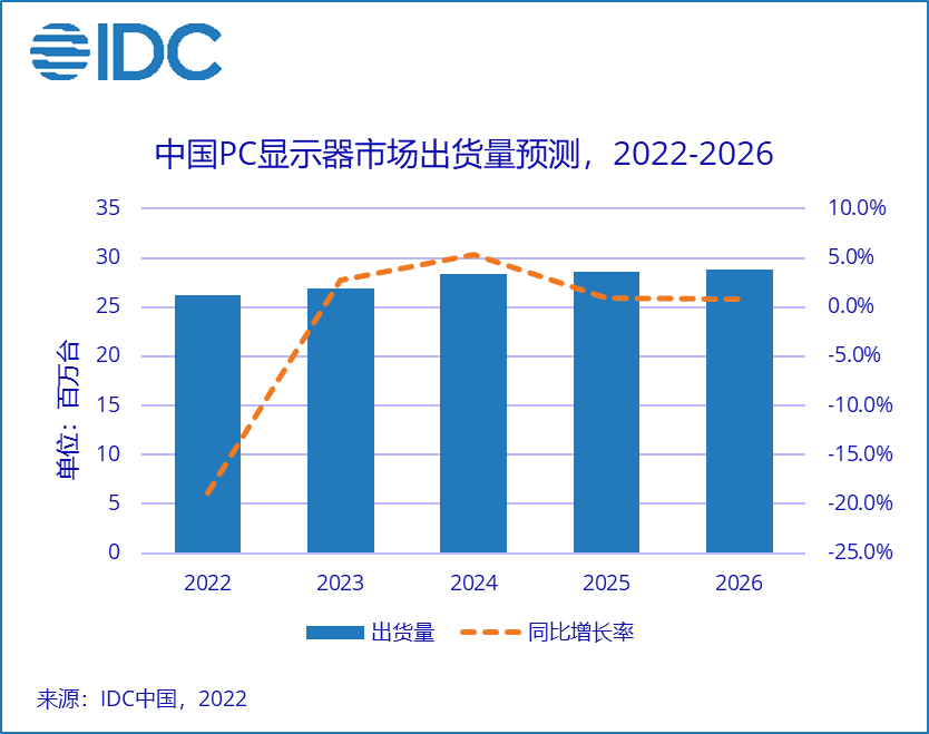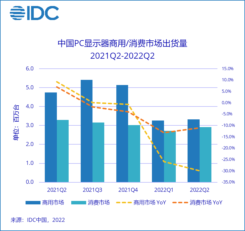 IDC:Q2 中国 PC 显示器市场出货量 624 万台,同比下降 22.2%