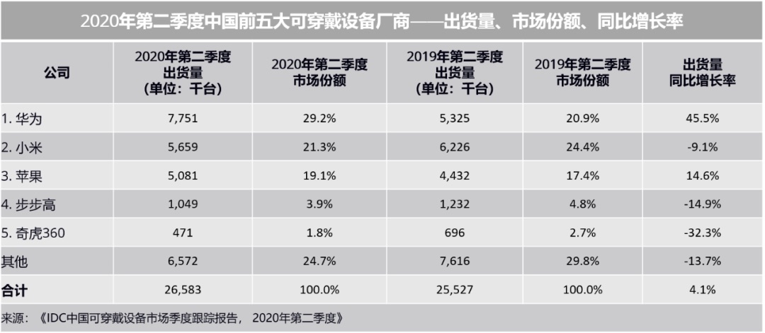 IDC《我国可穿戴设备商场季度盯梢陈述,2020 年第二季度》显现